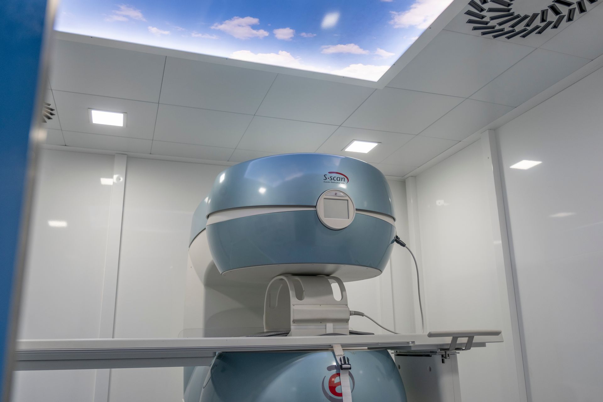 Per gli esami il Centro di Radiologia utilizza la Risonanza Magnetica S-Scan Esaote Aperta, un’apparecchiatura innovativa, di ultima generazione, che permette di evitare qualsiasi situazione claustrofobica, poiché il paziente viene posizionato in ambiente aperto come si vede dalla foto.